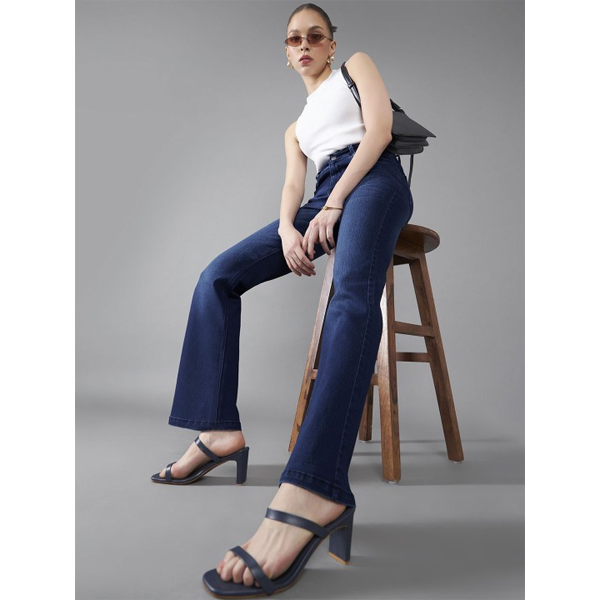 Women High-Rise Clean-Look Regular-Length Stretchable Flared Denim Jeans