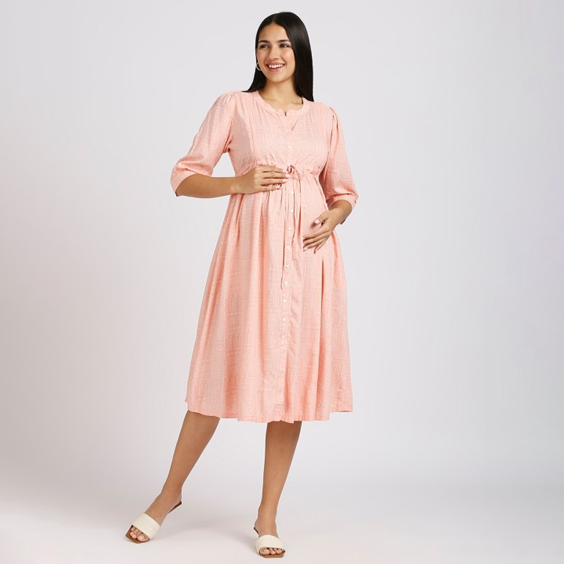Women Typography Printed Cotton Maternity T-Shirt Dress