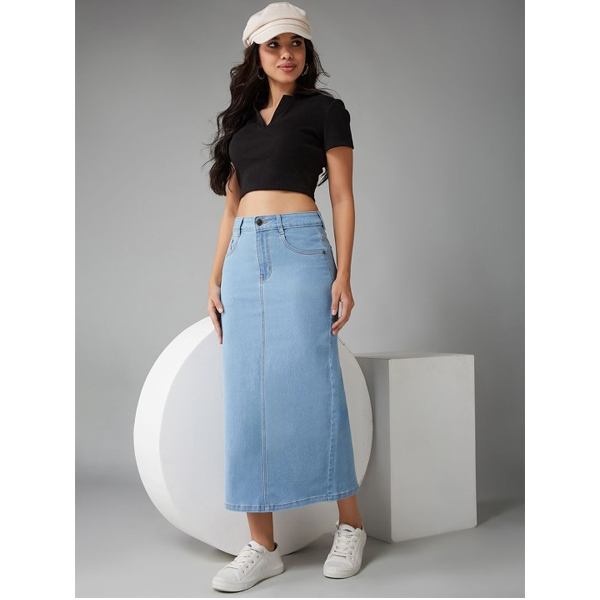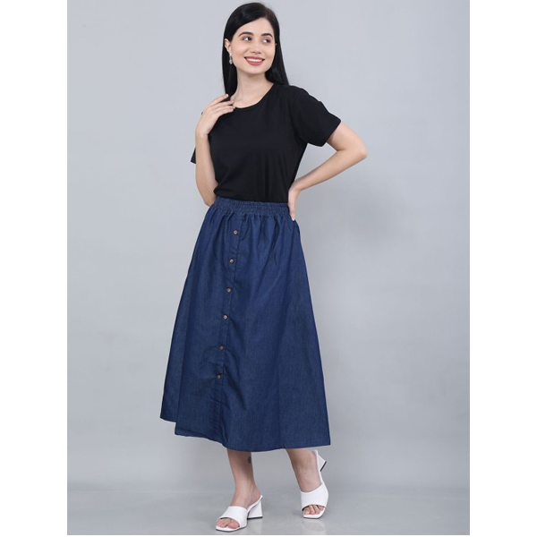 Denim A-Line Midi Skirt