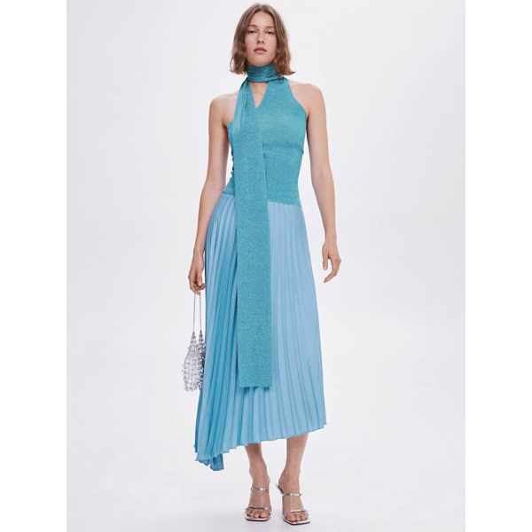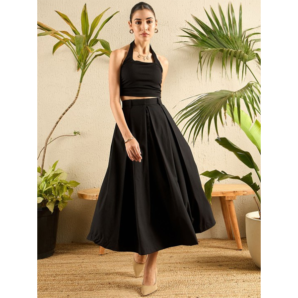 Accordion Pleat Maxi Flared Skirt