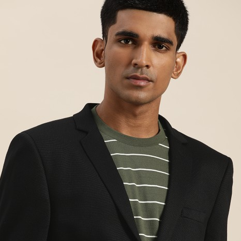 Men Black Slim Fit Solid Single-Breasted Casual Blazer
